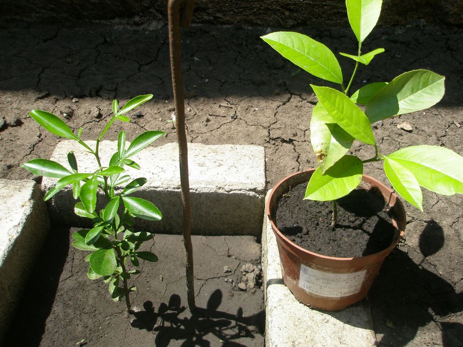 Цитранж троер (сеянец) в открытом грунте, а рядом уншиу на подвое троера. Так же уншиу растёт в открытом грунте на трифолиате. Очень хорошо пережил зиму в пенопластовом коробе без обогрева - без обморожений.