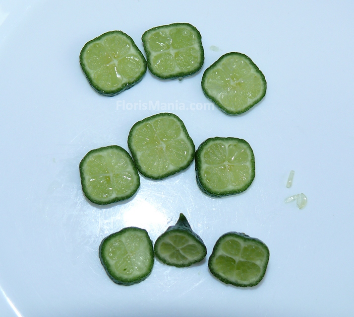 Вкус: каламондины - типичные каламондины)), кумкват Мейва, как и ожидалось с очень сладкой кожурой и кисловатой серединкой. Лиметтта Пурша - вкус лимонада, для меня неожиданно. Жаль, что плод был один, очень понравился. Висел на деревце очень долго - с весны и до весны.