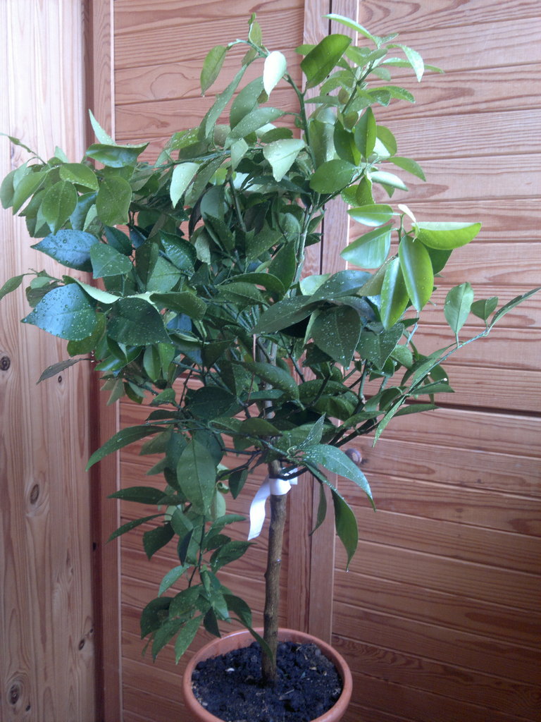 Прижилась у меня прививка гибрида Citrus Clementina x Citrus Sinensis ОТА 38. Два раза сбрасывала молодой прирост. И сейчас остался лишь один молодой листик.