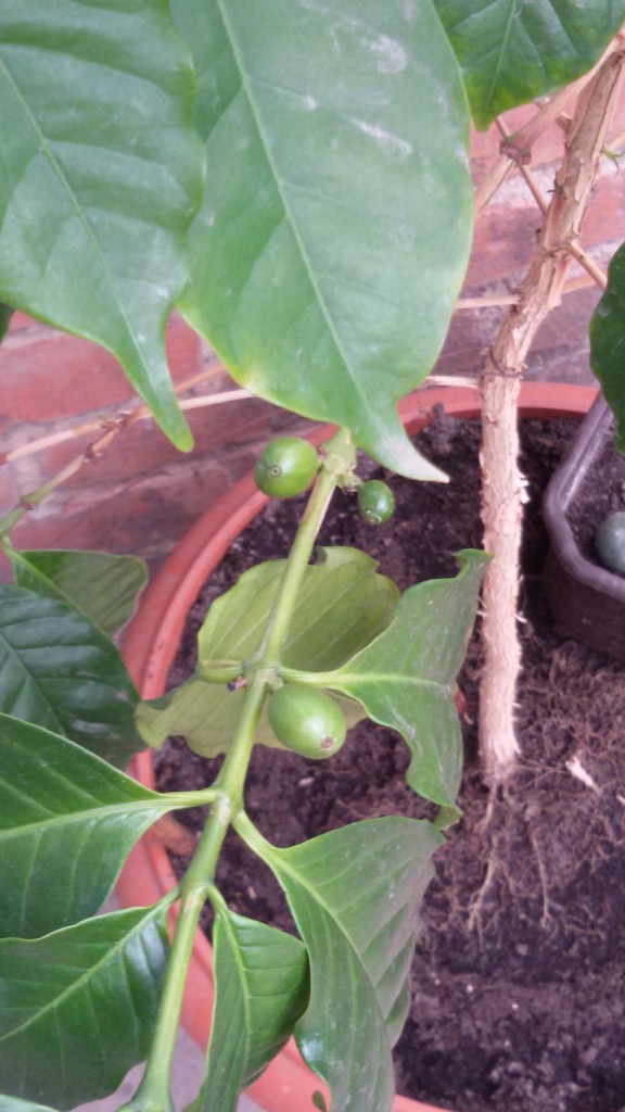 Очень интересно завязываються и зреют ягоды коф, сначала процвели, торчала палочка (пестик наверное) а потом отпала и остались маленькие чашечки от цветочков, ну я удивился, растроелся, думал пустоцветы (после цитрусов то где сразу завязь начинается). А спустя месяц они начали рости)