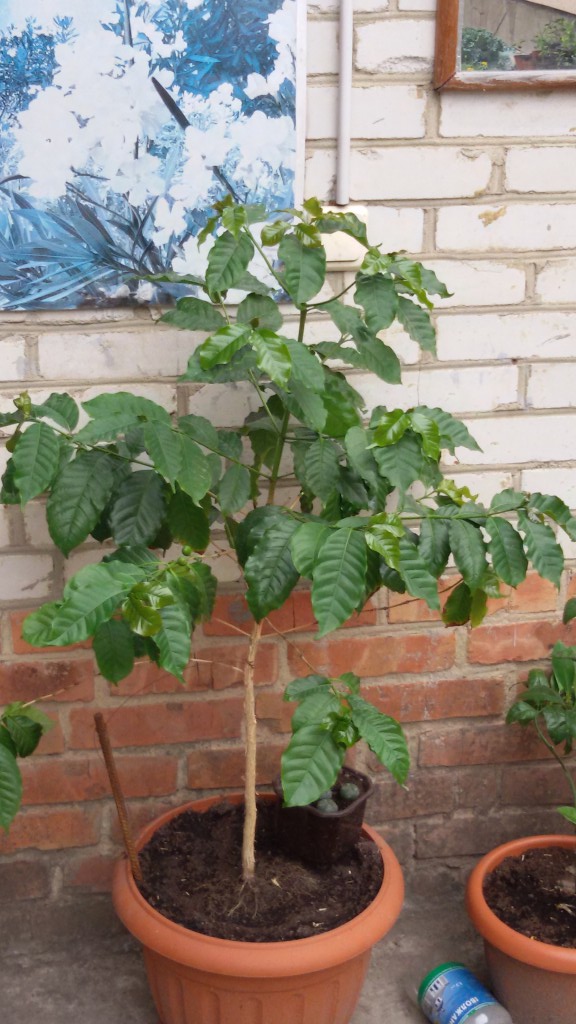 Собственно кофе и ягодки, высота моего растения 1,2 м. Возраст 3 года.