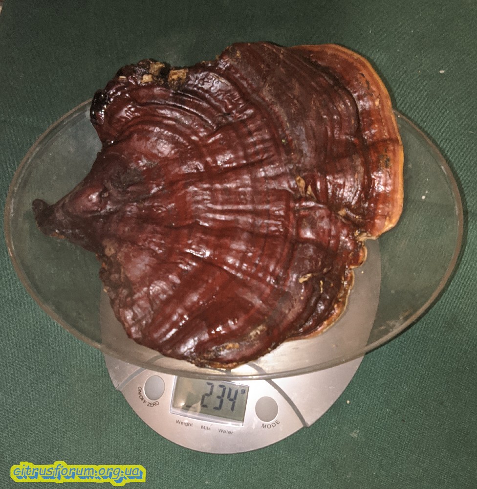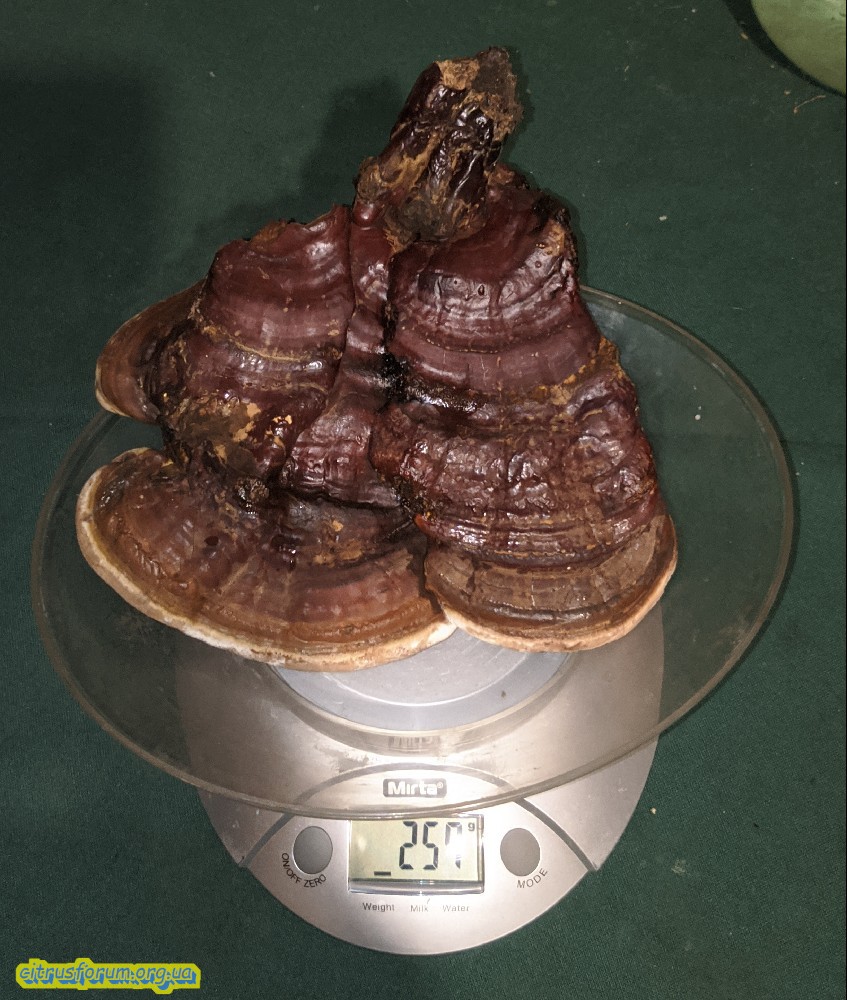 Например, пару раз, встретились Ganoderma lucidum (трутовик лакированный) — гриб Рейши. Я взял пару штук взрослых, но ещё не старых.