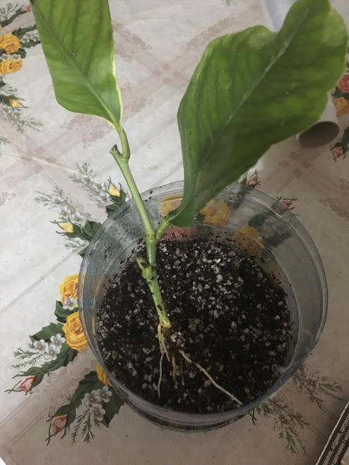 Лимон Еврика- 1 живець розділила на 2, поставила їх разом у бутилку-тепличку 05.05.17 (тобто росли в одинакових умовах). Результат 15.09.17- один иає гарний пучок коріння,