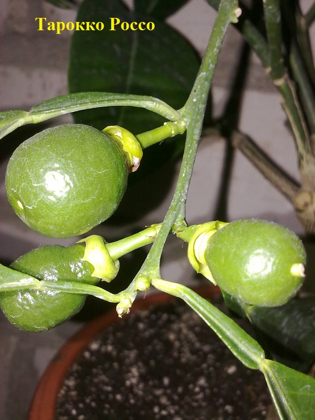 Потихоньку начал регулировать плодоношение и Тарокко Россо, сбросил 2 плода, остальные продолжают наливаться