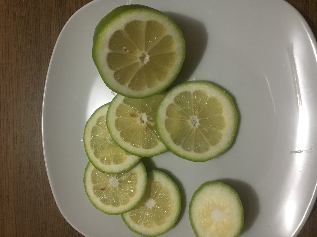 2 лимона зняла, ще 2 - висять на дереві. Сьогодні спробувала який на смак недозрівший лимон- є невелика гіркота в шкірці, дуже соковита і дуже кисла м"якоть і декілька недозрівших кісточок.