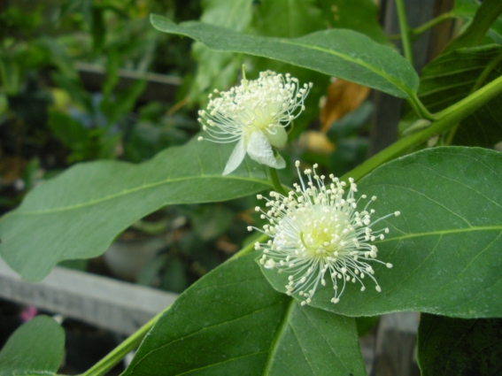 Этой весной меня порадовала - впервые зацвела бразильская гуава, сеянец возрастом 6 или 7 лет. Плоды должны быть значительно крупнее, чем у псидиума прибрежного, на данное время они вот такие. Если даст Бог и они созреют, да ещё и вкусными окажутся - можно будет и поразмножать)).