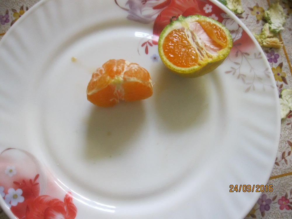 Ну вот я не выдержал и сорвал 1 мандарин! На вкус сладкий с лёгкой кислинкой и очень сочный! Шкура тонкая и очень легко отделяется,семян не было! Мне кажется что кислинка из за не полной спелости плода!Ну а так очень даже не чего мне понравился!