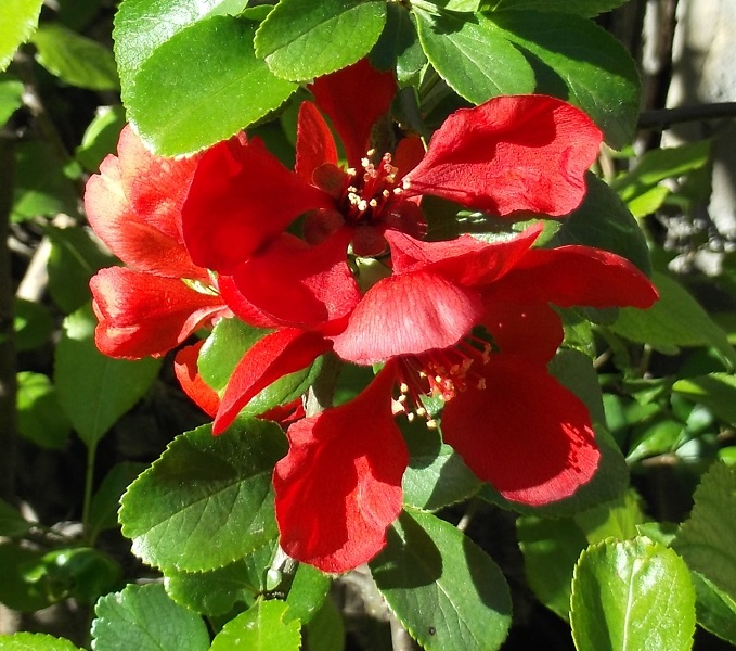 Впервые зацвёл хеномелес мирабилис, выращенный из семян. Ждать пришлось довольно долго: лет 6 наверное. Здоровый такой куст вырос, больше метра в высоту, довольно раскидистый и вот таки сподобился зацвести :-):