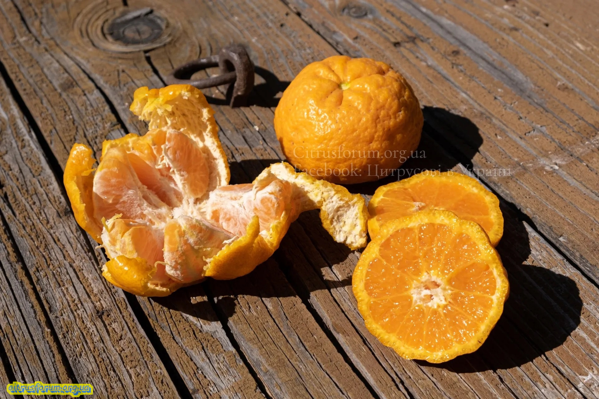 Скажу так, це один із найсмачніших високоякісних мандаринів! на рівні Orri. Солодкий-солодкий! Брікс високий, від 15-17%. Смак нагадує ананас, манго, тобто мультифруктовий, тропічний. Кислотність не відчувається. При очищенні відчувається аромат, великий відсоток ефірних масел у флаведо, альбедо злегка жовтого кольору. М'якоть насичено-оранжевого кольору. Насіння немає. В загальному супер!!!