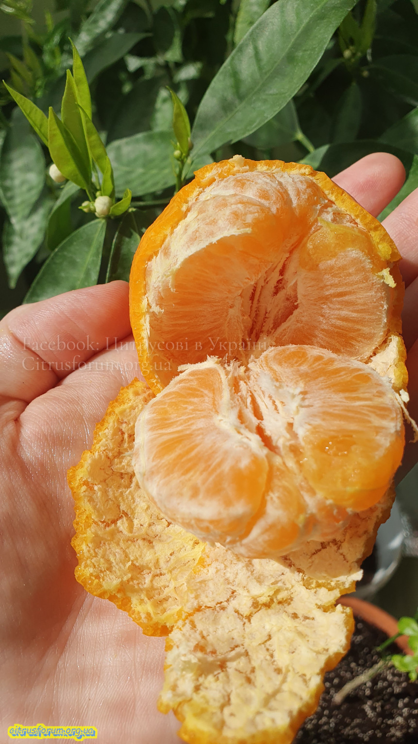 Скажу так, це один із найсмачніших високоякісних мандаринів! на рівні Orri. Солодкий-солодкий! Брікс високий, від 15-17%. Смак нагадує ананас, манго, тобто мультифруктовий, тропічний. Кислотність не відчувається. При очищенні відчувається аромат, великий відсоток ефірних масел у флаведо, альбедо злегка жовтого кольору. М'якоть насичено-оранжевого кольору. Насіння немає. В загальному супер!!!
