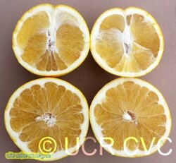 Внутрішня м'якоть світла до «кремово-жовтої» і тверда. Плід за зовнішнім виглядом схожий на білий грейпфрут, без кісточок або майже без них, середньої величини, з гладкою середньо жовтою шкіркою, які досить круглі.