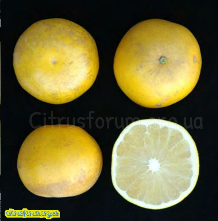 Внутрішня м'якоть світла до «кремово-жовтої» і тверда. Плід за зовнішнім виглядом схожий на білий грейпфрут, без кісточок або майже без них, середньої величини, з гладкою середньо жовтою шкіркою, які досить круглі.