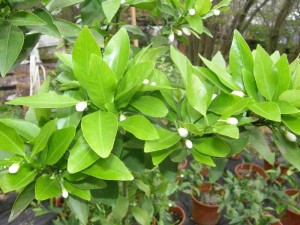 Мой танжелоло немного цвел весной, единственную завязь случайно оборвали. А сейчас с перегрева решил, что надо цвести, и выдал с десяток бутонов.