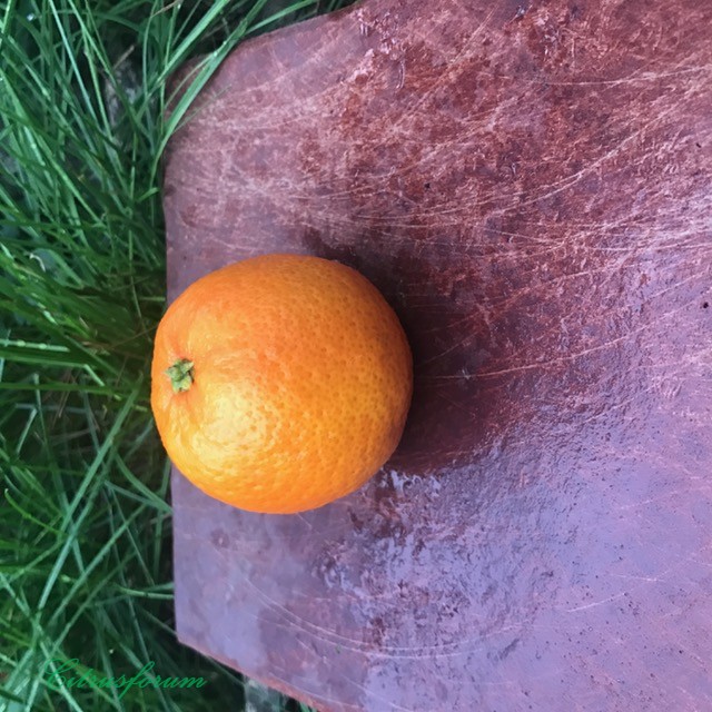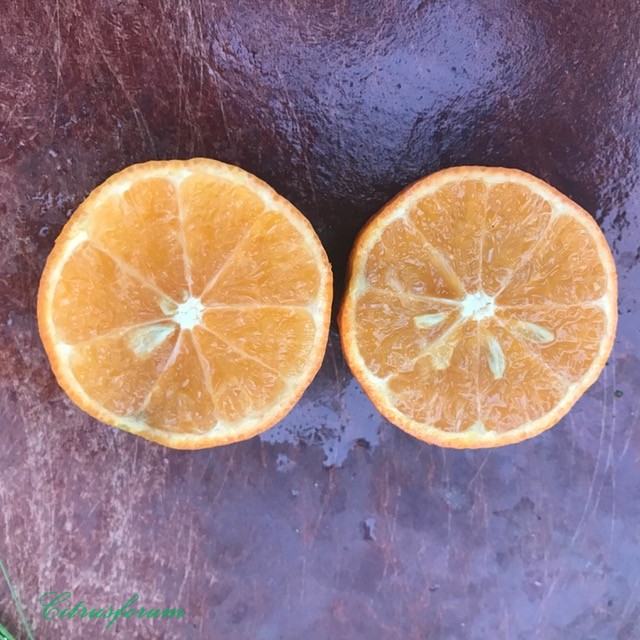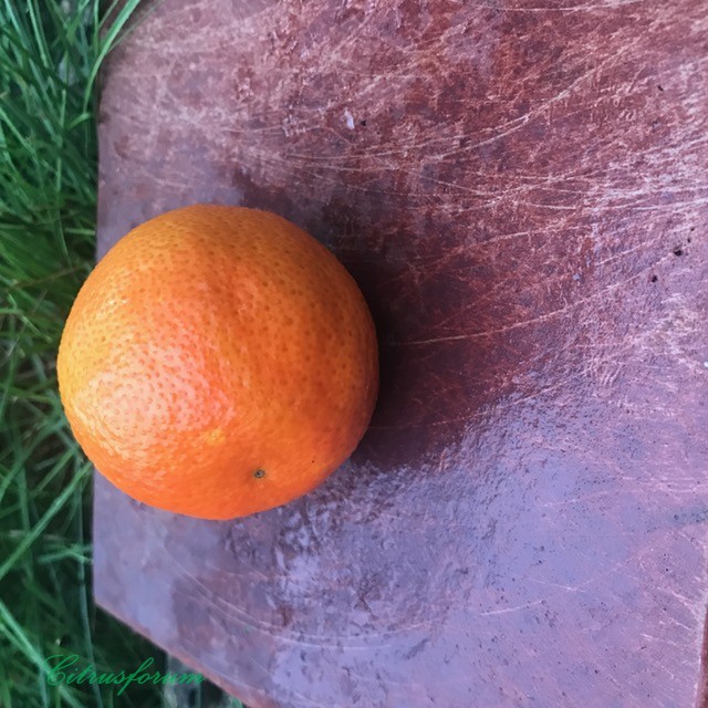 Размер со средний мандарин, форма шарообразная. Шкурка имеет слегка красноватый оттенок, тонюсенькая, прилегает плотно, но чистится при этом легко, практически не горчит. Запах цедры очень насыщенный, как бывает у некоторых клементинов - много разных парфюмерных нот, поэтому трудно описать.