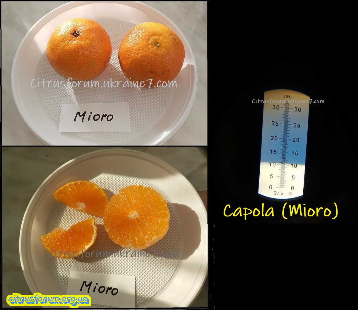 Mioro (Capola) - ранній сорт і збирається в період з листопада по січень у перший сезон, але може залишатися довше на дереві у хорошому комерційному стані.