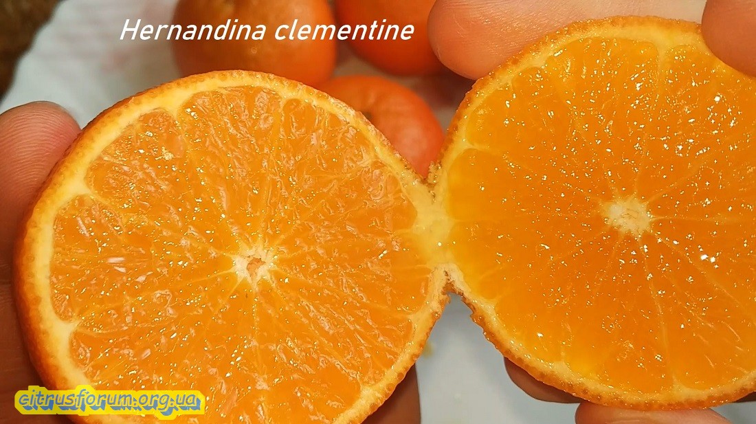 Клементина "Hernandina" із Валенсії. Плоди чистяться досить легко. Сегментні стінки (перегородки) середньої твердості. Насіння 1шт / на плід. Смак класичний, без кислинки при повністю визрівшому плоді, як і у більшості клементинів. Цукру 11.2%