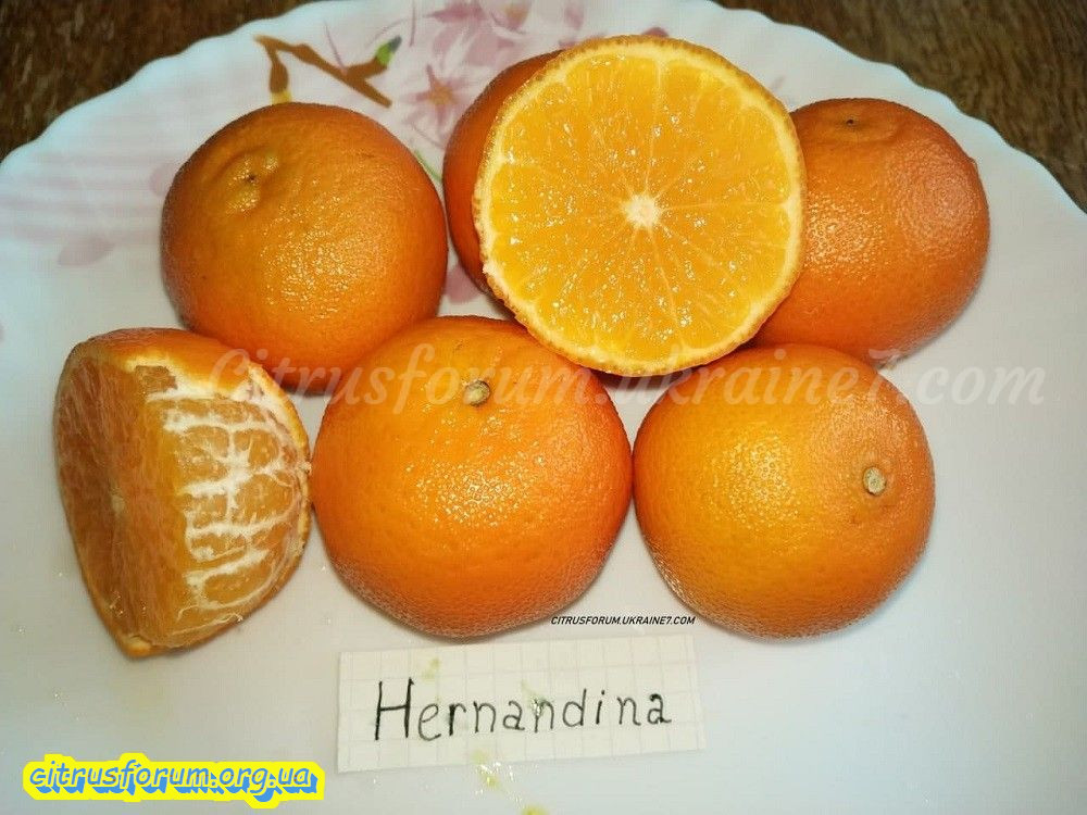 Клементин "Hernandina" бутонная мутация сорта "Fina". Растения енергичны, не имеют плакую форму. Шипы отсутствуют или не сохраняються. Сорт не получил комерческого распространения изза позднего срока созревания который припадает с Октября до декабря, но может задержаться и до февраля. Плоды средние, цвет может варьироваться от желто-оранжевого до красно - оранжевого, кожура твердая, чистится не очень легко, мякоть оранжевая, кисло-сладкая, безсемянный или малосемянный сорт.