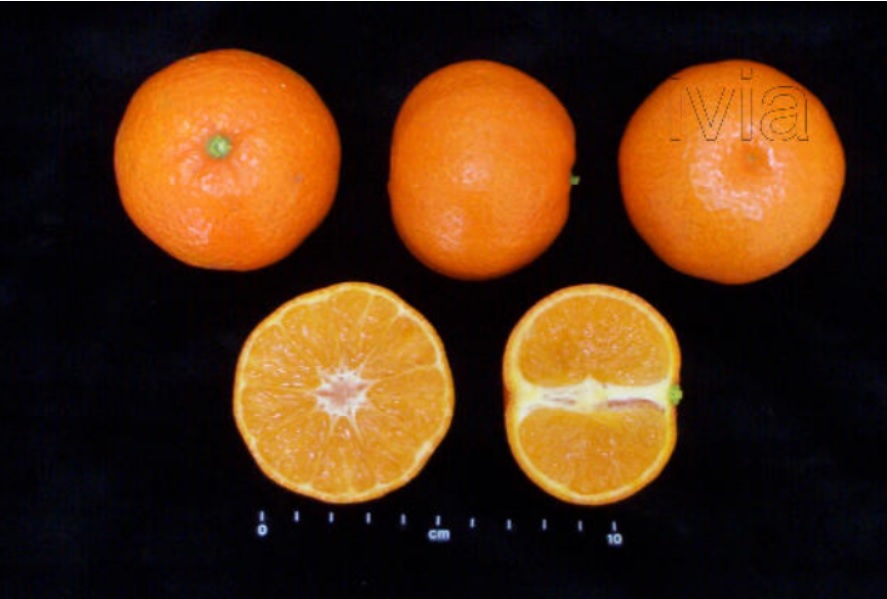 Плоди чутливі до пошкоджень дощу та вітру, 5см в діаметрі, сплюснуті, трохи крупніше ніж у батьківського сорту і дуже симетричні. Шкіра інтенсивно оранжевого кольору, дуже м'яка.