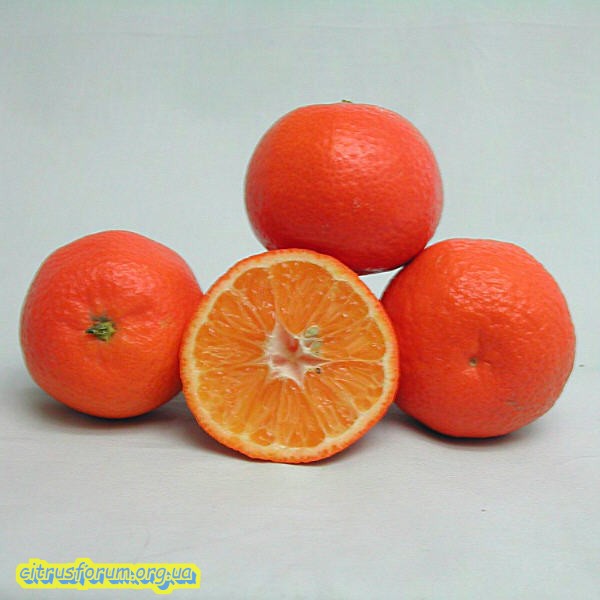 Плоди грушоподібної форми, деколи круглої форми. Колір шкірки глибокий жовтогарячий до червонувато-оранжевого кольору, але не червона, як Денсі танжерина. Сегменти від 8 до 12.