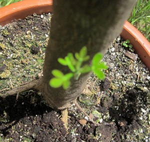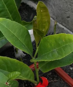 И такого же плана, как на первом подвое, вырос прирост на большом лимоне