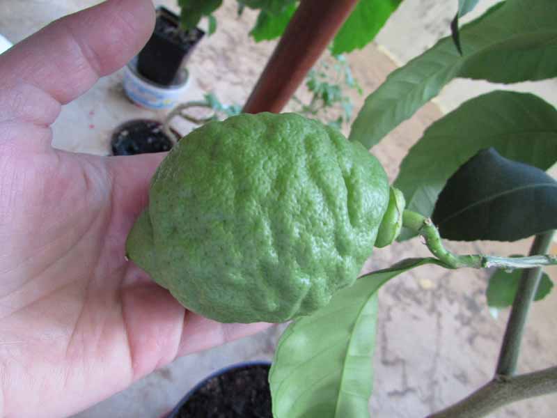 Дерево растёт спокойно, чутка капризно, как многие цитроны - не залей, не переохлади корни, не вздумай допустить клеща(листья цитронов у клеща, по моим наблюдениям, в основном приоритете). Цветёт стабильно и множественно, но у меня от чего-то часто опадала завязь, даже доходя до размера грецкого ореха. В этом году, наконец-то, выросло два цитрончика, тот что на фото - я нечаянно сбила рукой вчера. Размер крупного лимона, костей много, судить о сладости кожуры пока не могу - плод этот совсем недоспелый, однако, не беда- сварив с его участием лимоновый конфитюр, аромат и привкус получились сказочные:)
