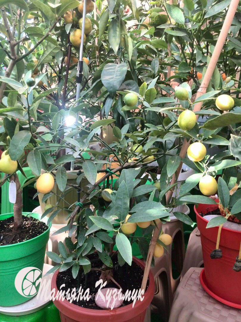 Лаймкват немного раньше. На каламондине ещё дозревают плоды, а на лаймквате уже почти съели все. Кумкват нагами наполовину ещё зелёные. Это из моих уже серьёзно плодоносящих. Мне кажется, что их троих можно на один подвой посадить. А также все кумкваты и их гибриды. Для экономии места.