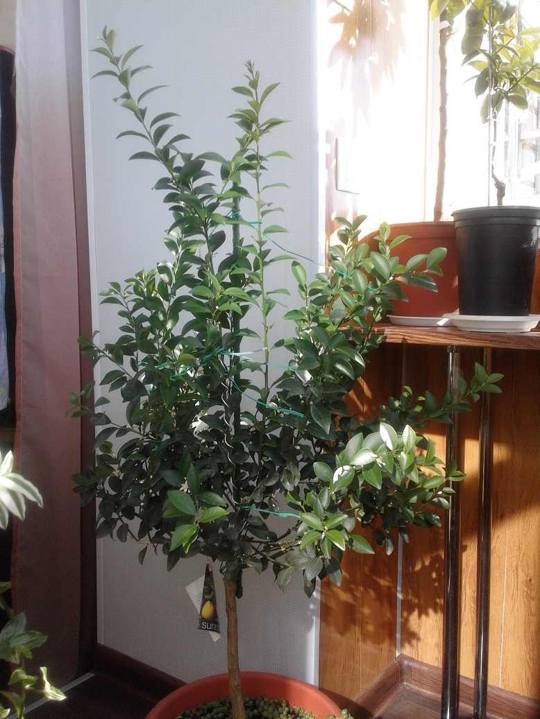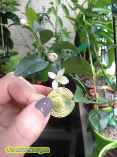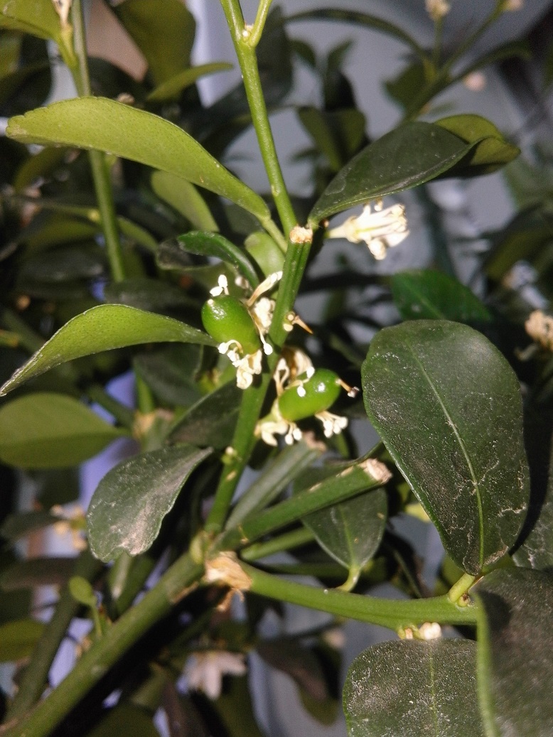 Растение очень хорошо чувствует себя в балконных условиях, растет практически не прерывно, новый прирост начинается, когда предыдущий еще до конца не вызрел. Думаю свою не прихотливостью Санрайз унаследовал от каламондина. Цвести, как и кумкваты начинает с мая. Первая волна цветения была не значительной, а вот вторая очень массовая бутоны до сих пор появляются. Уже есть и первые завязи, интересно сколько завязей дойдет до созревания.