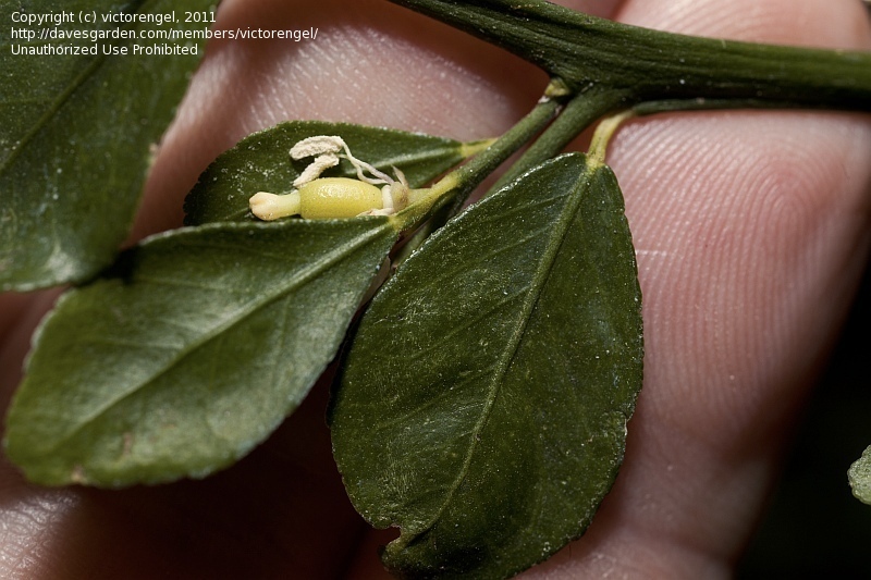 Невысокое дарево или кустарник, в диком виде произрастающий в тропических лесах австралийских штатов Новый Южный Уэльс и Квинсленд. Дерево колючее, с мелкими листьями и тонкими, прочными ветвями. Цветки мелкие, одиночные. Плоды пальцевидные, наполненные соковыми мешочками, которые напоминают икринки, за что их называют "цитрусовой икрой". Плоды созревают с ноября по декабрь. При созревании могут оставаться зелеными или приобретать разные оттенки красной, фиолетовой, бурой окраски. Цвет соковых мешочков так же может быть разным - белым, зеленым, розовым, Вкус плодов напоминает настоящий лайм.