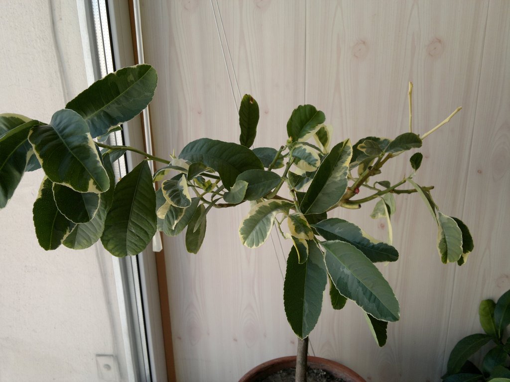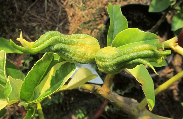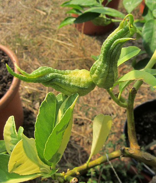 Вот мой Variegated Buddha’s Hand (Citrus medica variegata)