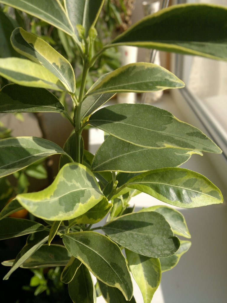 Осматривая своих питомцев обнаружил довольно интересный окрас листков на своих Orangequat Centennial и вариегатном кумквате