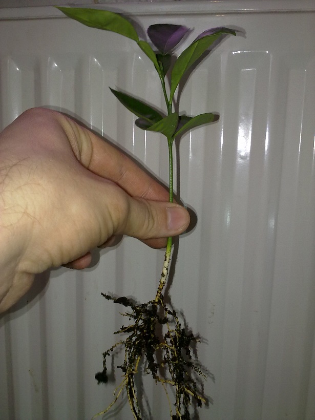 Прошло 3,5 месяца, как были посеяны семена помело. Сегодня делал очередную пересадку из общего горшка по индивидуальным, корневая растет мощнейшая, думаю в апреле сеянцы можно будет уже использовать для прививки.