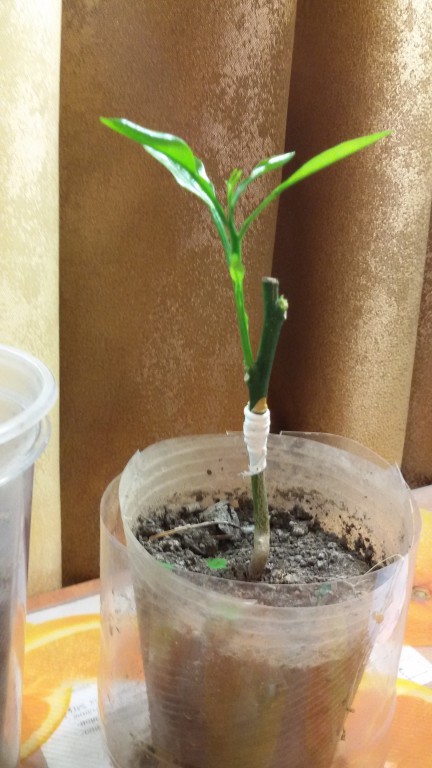 Мандарин Миагава 00 , средством долгих манипуляций и рядом неудачных прививок был привит на цитранж, на котором прижился 1 почкой с листочком и спустя месяц безмолвия выдал прирост)