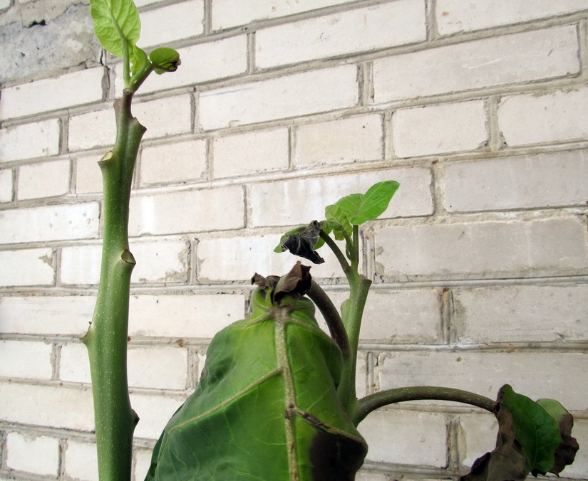 Осенью все листья получили обморожения при минимальном ночном заморозке. Зимовка проходила в погребе и весной верхние почки начали развиваться. Так вот и думаю: при продолжении дальнейшего роста этого томата, в никакие двери занести-вынести его я уже не смогу - стоит ли дальше с ним играться?