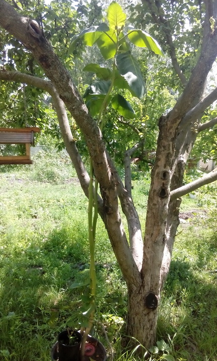 укоротить его я так и не успел; поставил под яблоню, что бы не так обгорало; не пересаживал, не удобрял; полив не регулярный и град его сильно потрепал.