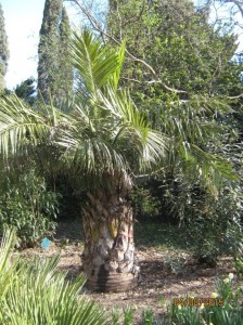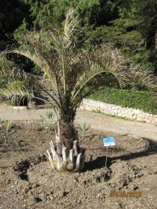 В Никите, выше пальмовой аллеи трахикарпусов, идущей от беседки с кактусами, расположен участок средиземноморских пальм.