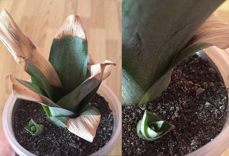 Это 2 шт, которые мне ребята отдали (точнее я поросила чтобы отдали так как их все равно утилизировали). Если оторвать сухие листья, то между сухими и первым ярусом зеленых тоже нашлись зачатки корешков. Сухие нужно отрывать, так как за 2 суток от соприкосновения с водой они начали покрываться какой-то слизью. а зеленые листья чувствуют себя замечательно