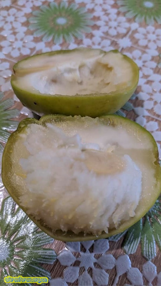 Плод размером с апельсин, симметричный, круглой или овальной формы, с легко повреждающейся тонкой, гладкой кожурой. При созревании меняет цвет на светло-зеленый, желто-зеленый или желтый (это зависит от сорта).
