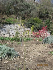 - видно не очень, но на месте было заметно что уже прорастают почки, есть несколько неповреждённых концов веток, сохранилась значительная часть листьев, есть и подмерзания верхней части, видимо там, куда передаваемого стволом тепла земли не хватило или не было полного вызревания тканей.
