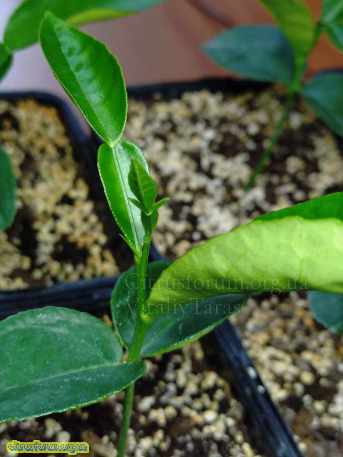 Висіяв насіння жовтого Помело (Honey Pomelo), привезеного із Китаю. Смак приємний. Виріс трилистий листок, сіянець із 15шт. Видимо запилений з Poncirus Trifoliata. Буду наглядати дальше...