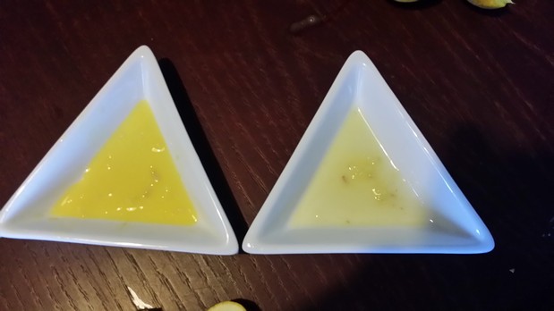 Кстати, ниже на фото сравнение количества масла после декантации в течении ночи в моём и крымском понцирусе: