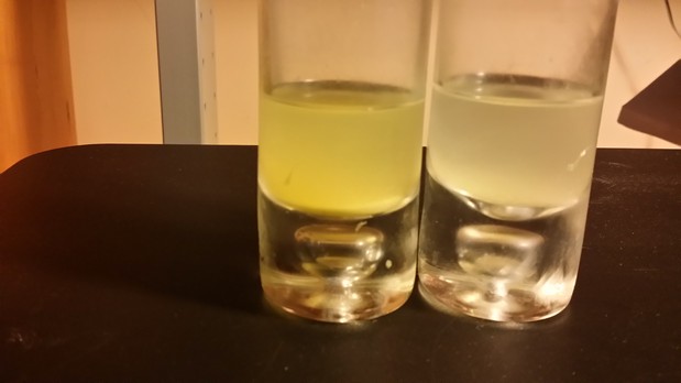 Вкус у крымского после разбавления приемлемый, горчинка примерно как у грейпа, липнущего масла почти нет, хотя после 5 часов в холодильнике оно видно в виде осадка на дне.