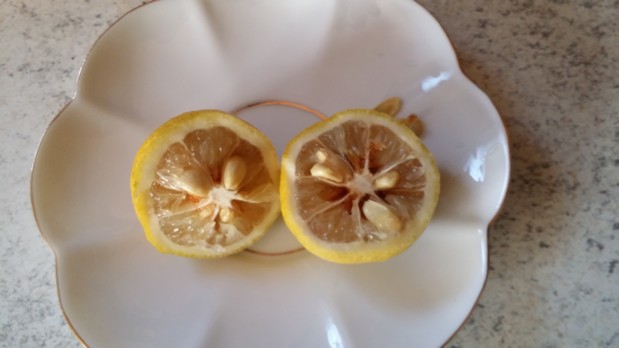 Косточки как у ичангензиса, сока довольно много, он менее кислый чем лимонный, со слабой горчинкой (меньше чем у грейпа). Слабый привкус есть, но не понцирусовый, а скорее как у ичангензиса. Внутренних смол нет.