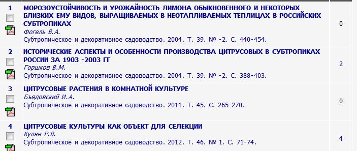 Собственно к чему весь этот цирк с регистрацией? А к тому, что на elibrary много интересных научных статей по цитрусовым, хурме и т.д.
