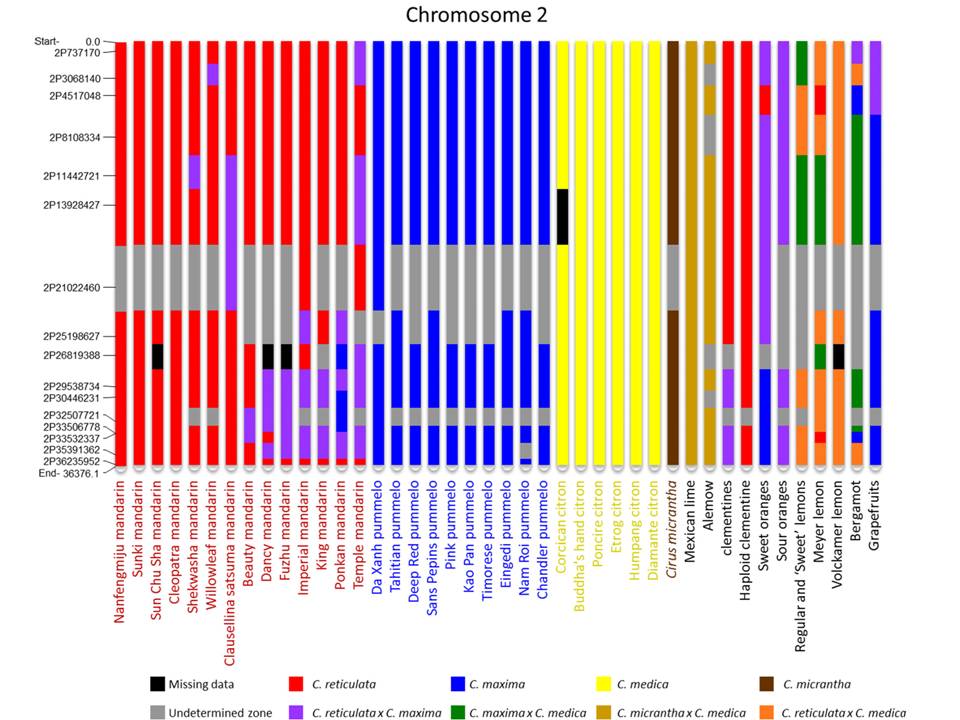 Разные мандарины имеют различное количество генов C. Maxima с преобладанием генома C.reticulata.