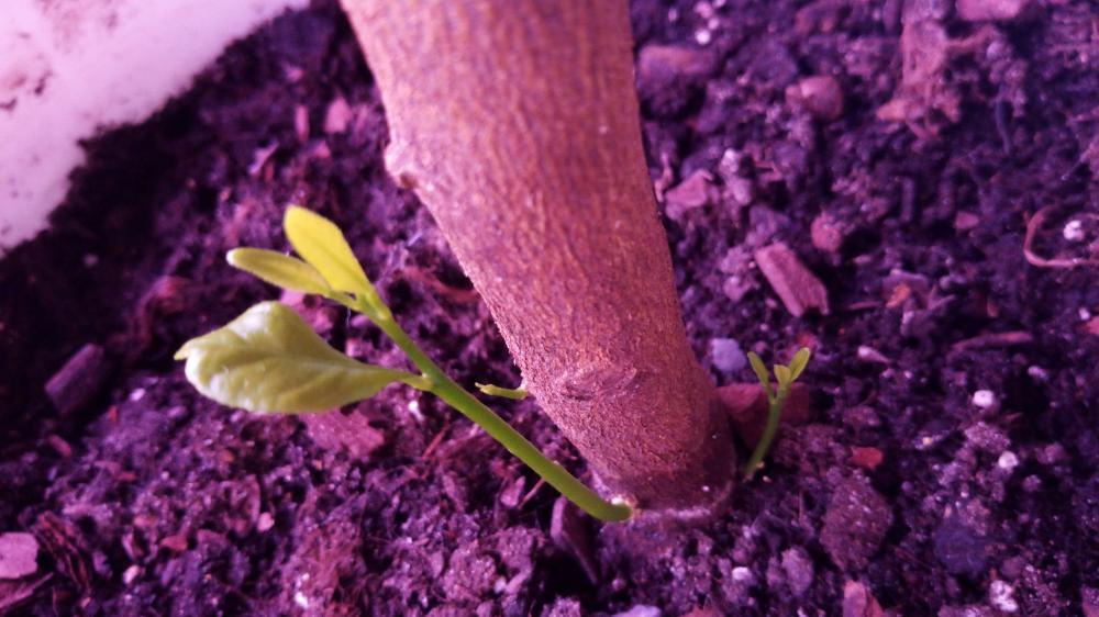 На подвое кумквата вырос росточек. Не удаляла специально, хотелось определить что за подвой.