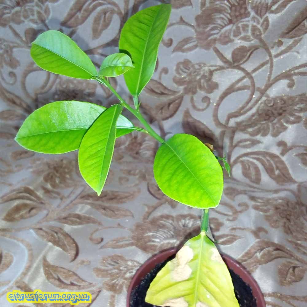 ) і не міг визначитися навіть з видовою приналежністю, подолати цю перепону мені допоміг тест на запахи. Трохи потерши листову пластину я відразу впізнав лимон, запах з'явився яскраво виражений, легкий і надзвичайно духмяний. З потенційним мандарином було по-іншому, запах від листочка був взагалі не характерний для цього виду. Якщо б сам не висаджував насіння і не визначив би методом виключення, що на моєму підвіконні зростає саме мандарин або його гібрид, подумав би, що це взагалі якась декоративно-листяна рослина. Запах був чимось схожий на запах болгарського перцю. Можливо це не зовсім коректне порівняння, але саме так мені здалося.