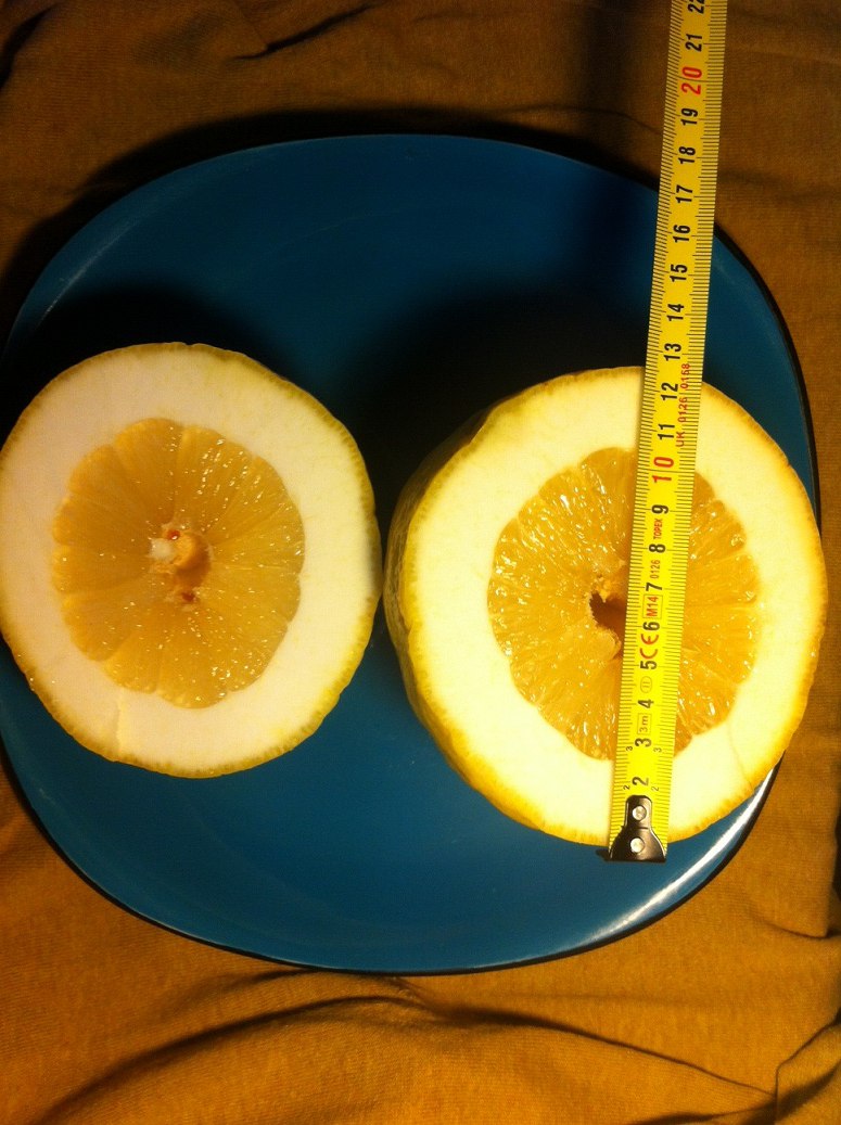 И еще, уточнение - вдоль разрезан меньший плод, а диаметр измерен у большего.