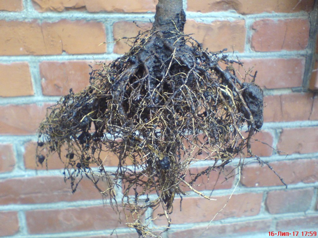 Штамб более-менее видно на фото, корень нормально тогда не сфотографировал, есть очень толстый стержневой корень, точнее два вместе толстых центральных стержневых, ответвления в основном только в верхней части, снизу "стержни" практически голые, верхний ярус корней свисает и закрывает обзор.