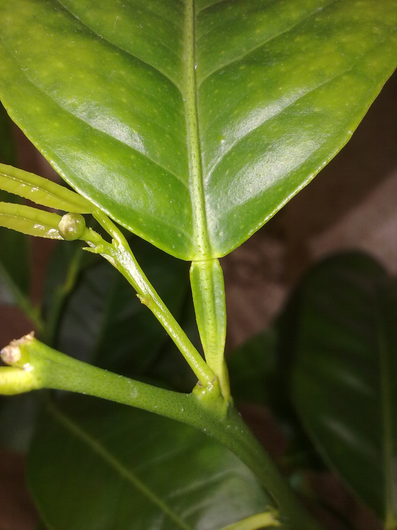 Крилатка присутствует в связи, с чем я предполагаю что - это не лимон, лист при растирании практически не пахнет, а если его порвать издает легкий цитрусовый аромат. Также растение уже надумало цвести цветы одиночные, если завяжет плоды это конечно облегчит процесс опознания, а пока выслушаю любые предположения.