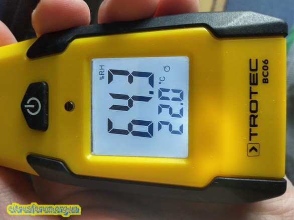 Якщо запітніло вповні хватає. Особисто я не бачу потреби в покупці влагомірів, цитруси досить легко з цим миряться. Пару років назад подарували електронний термогігрометр, но я рідко в нього заглядаю, показує точно, но потрібно дати 10хв для точного вимірювання.